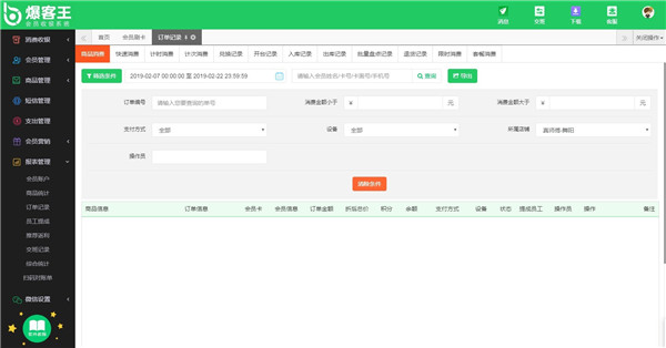 爆客王会员管理收银系统是一款适用于各种店铺的收银软件,我们可以通过这款软件记录所有产品的单价,然后根据每个客人的消费情况来统计出他们的花费金额,最后成功完成收款。