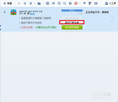 5、在下载文件时启用 离线下载加速 功能,否则离线下载将不能使用