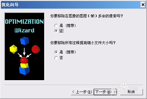 2、如果想清晰一点,你就不要动“优化”这个动作,或者把图片大小(图像大小,画布大小)调小一点!