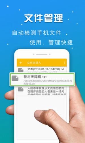 ★自动检测您的手机中的所有txt文件可导入本地文件夹;