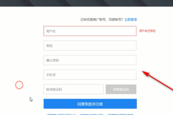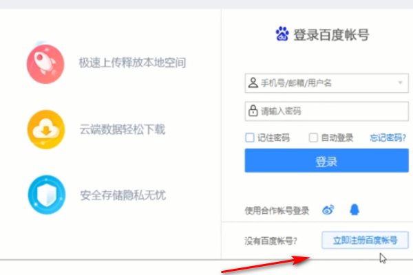 (1)打开百度网络磁盘软件,然后单击“立即注册百度帐户”。