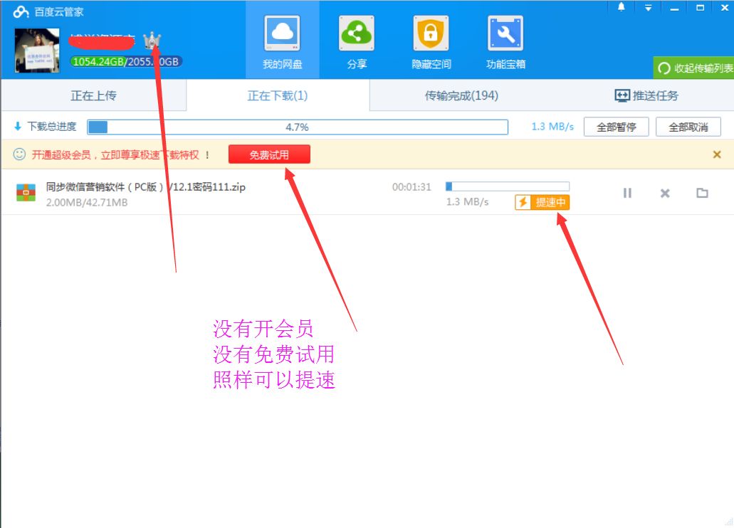 二、使用百度网盘破解版不限速2019下载\上传遇到失败、中断、速度慢、路径无效、无权限,怎么办?