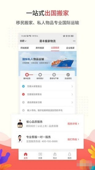 易丰搬家app主营全国长途搬家、异地搬家、跨城市搬家、私人物品运输、办公室搬迁、家具电器拆卸安装、货物安全包装、钢琴托运等服务,一对一的服务很到位。