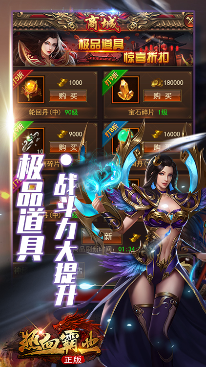 1.原关卡难度!百倍充值比例!超实惠充值比例1:100!!2.新手教程即送上千元宝!史诗装备!!