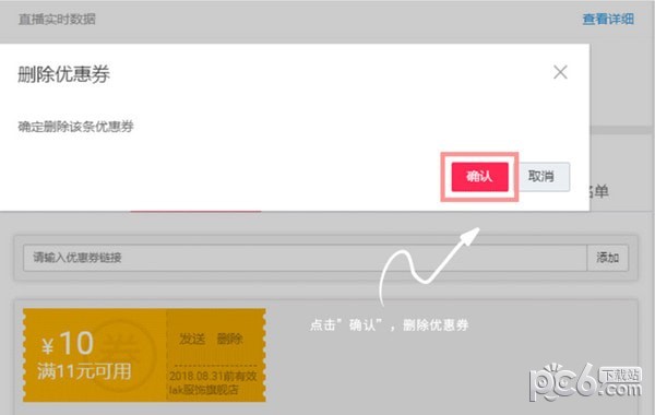 3、点击删除,则显示以下弹窗,点击确认,则删除优惠券