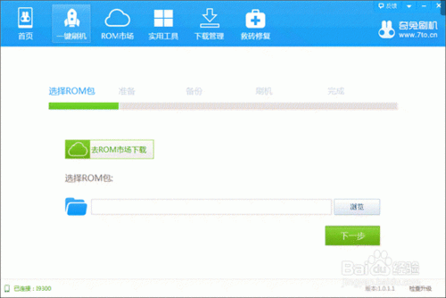 2、选择一键刷机,然后找到你下载的ROM包位置,或者在奇兔里下载。