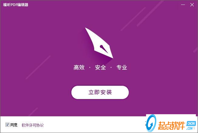 安装向导主界面非常简洁,安装程序默认用户同意了许可协议,只需点击[立即安装],就可以将Foxit PDF编辑器安装到电脑里面;