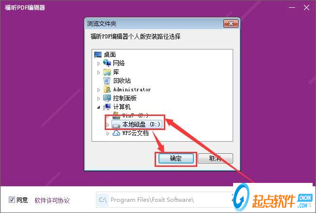 需要更改软件安装路径的朋友们可以点击安装向导右下角的[安装选项],安装向导有提供默认的安装路径:C:\Program Files\Foxit Software\。点击安装路径右边的文件夹图标,打开文件夹选择窗口,选择好安装路径文件夹就可以点击[确定]完成安装路径修改;