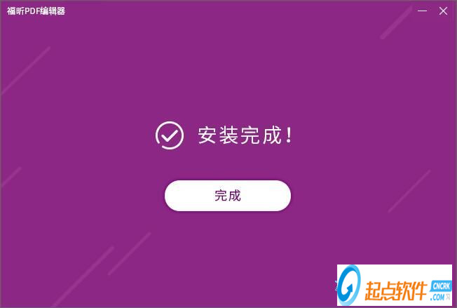 安装完成!安装程序已经成功在您的电脑上安装了Foxit PDF编辑器。安装向导会提醒安装完毕。点击[完成]就可以退出安装向导,同时运行Foxit PDF编辑器。我们就可以使用Foxit PDF编辑器编辑PDF文件了。
