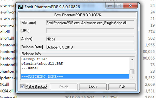 1.将[foxit-phantompdf-9.3.0.10826-patch.exe]拷贝到运行软件安装目录下,以管理员身份运行,点击[Patch]按钮