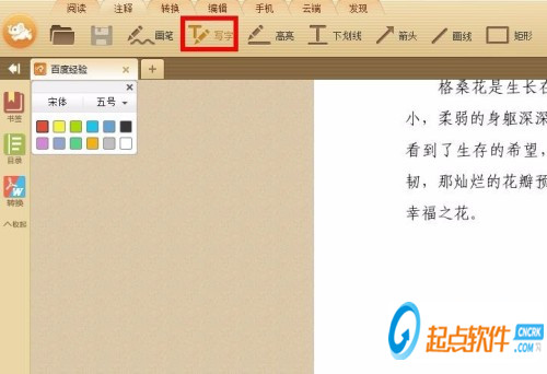 2. 点击页面上端的“注释”,在其下菜单栏中找到并点击“写字”。