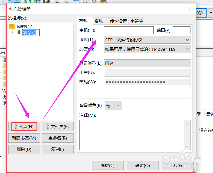 下面,来添加一个新的站点。打开“文件”→“站点管理器”,打开一个设置窗口。