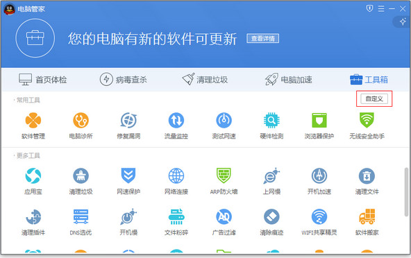 腾讯电脑管家工具箱支持小工具自定义,常用功能一触即达;