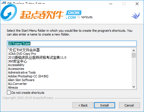 3、你可以设置软件的地址C:\Program Files (x86)\GrassSoft\Typing,可以默认地址