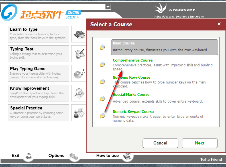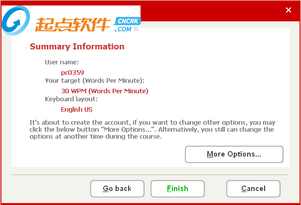 6、课程选项:请指定您希望在课程中练习多少文本,以及在一个屏幕上显示多长时间的文本。 较短的文本将花费更少的时间来完成
