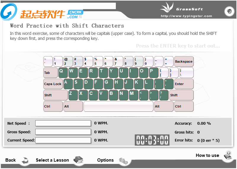 2、GS Typing Tutor官方版支持设置训练的方式,可以选择高级模式设置训练内容
