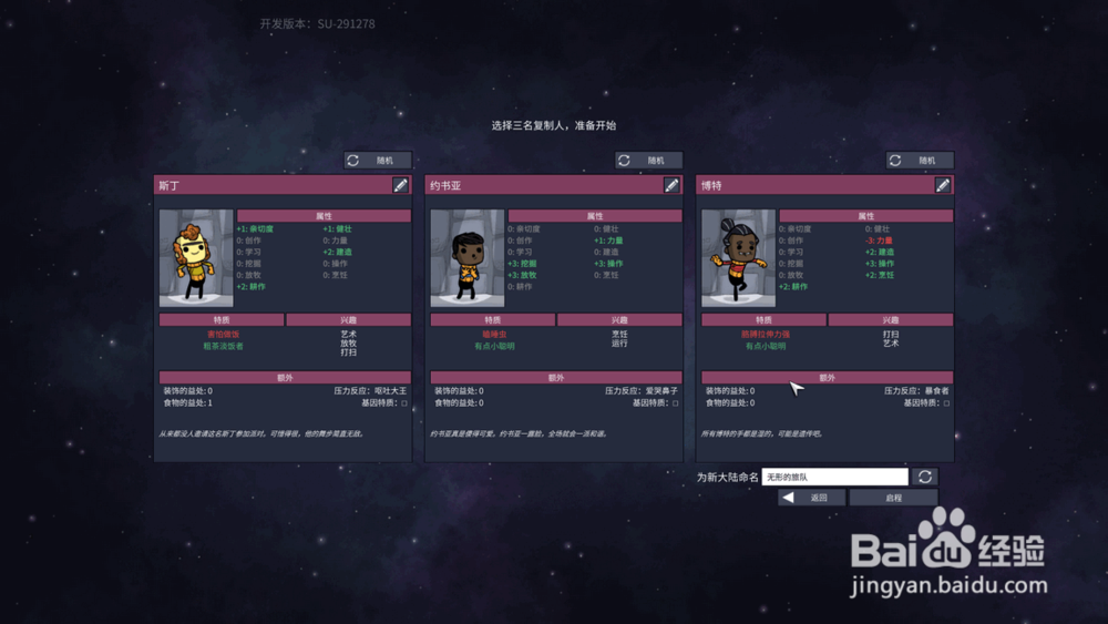 选择随机复制人,命 名 基 地。点击“随 机”可以选择需要属性的复制人。