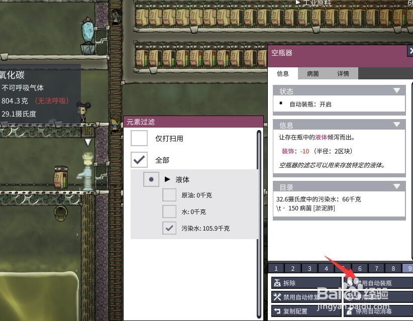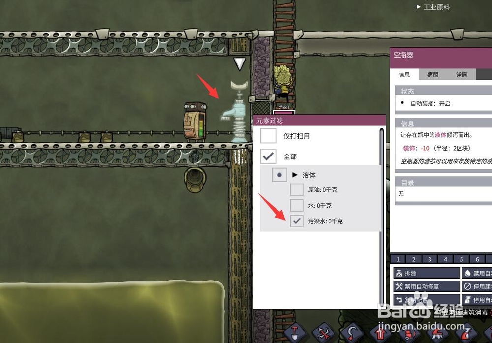 然后用空瓶器把污水排空到污水池中,污水池需要在中期自己建立,否则后面弄的污水到处都是,不好收拾