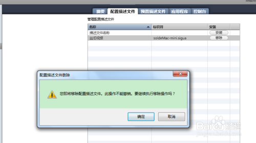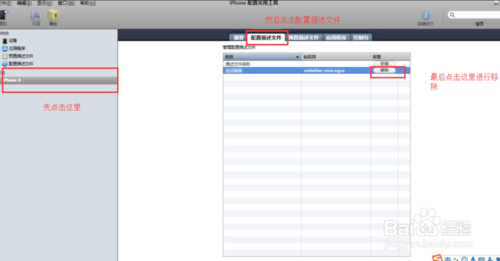 4、点击左上角的设备,选择你的设备-点击描述配置文件-选择该APP-移除。
