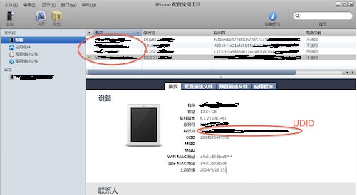 这里我们可以看到所有的设备,以及本设备的UDID资料。