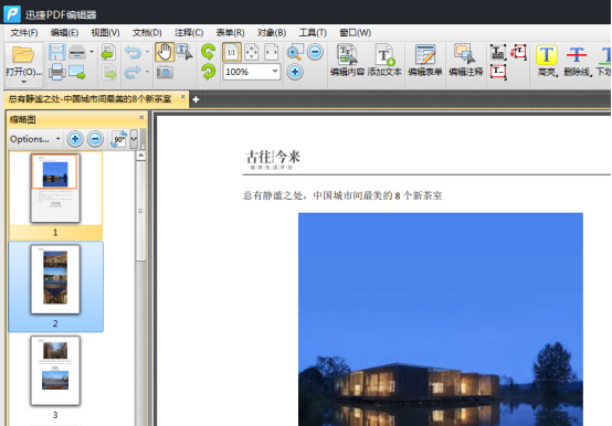 迅捷pdf编辑器免费版怎么去水印?步骤1:安装、运行迅捷PDF编辑器,并将需要编辑的PDF文件添加到软件界面中,软件将会自动呈现文件的第一页。