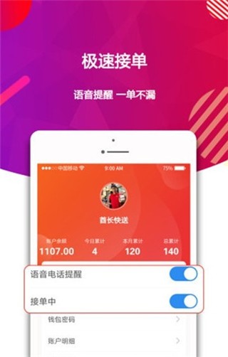 【极速接单】上线后可接到实时订单语音提醒,及时接单,不漏单;