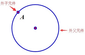 (10)外父元件。它和第11条外子元件相对应,表示点所吸附的元件,或生成构造元件的元件。例如,如果点P在创建时吸附在直线L上,则直线L是点P的外父元件;如果直线M和直线N相交生成了交点C,则直线M和直线N都是交点C的外父元件。
