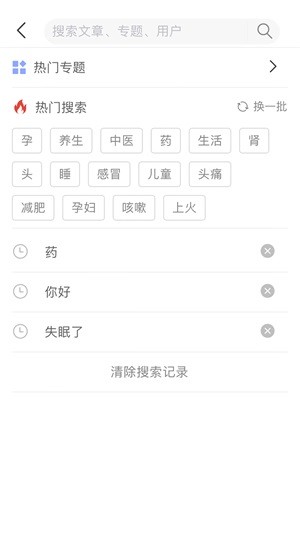 3、便捷搜索:搜索相关健康知识信息,满足大众及时了解专业的健康知识的需求。