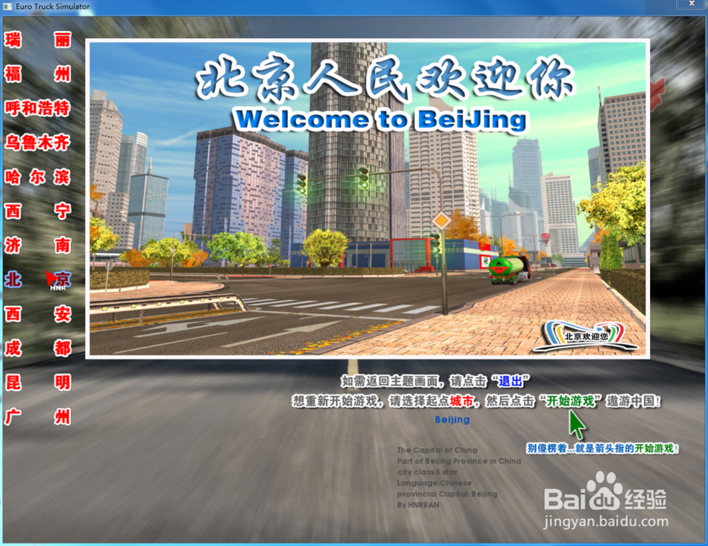 这里很关键,首先是选择你要跑的城市。这时候你找到开始游戏的按键了吗?看右下部分字体提示!点开始游戏那四个字就可以了!