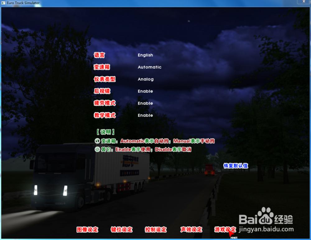 这里是游戏设定,看变速箱,疲劳驾驶,相对而言这个游戏还是很好的。