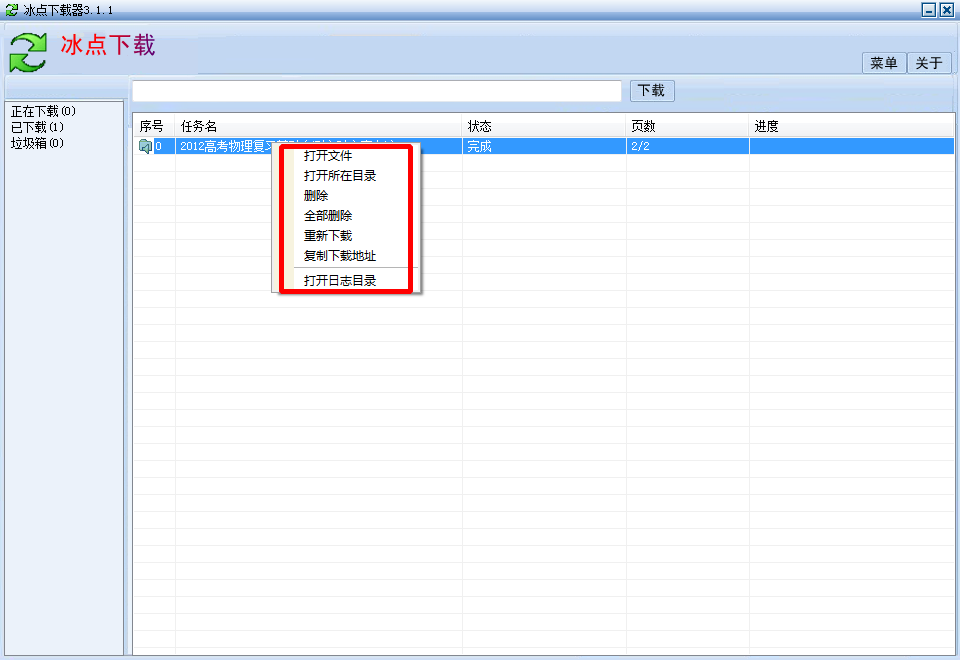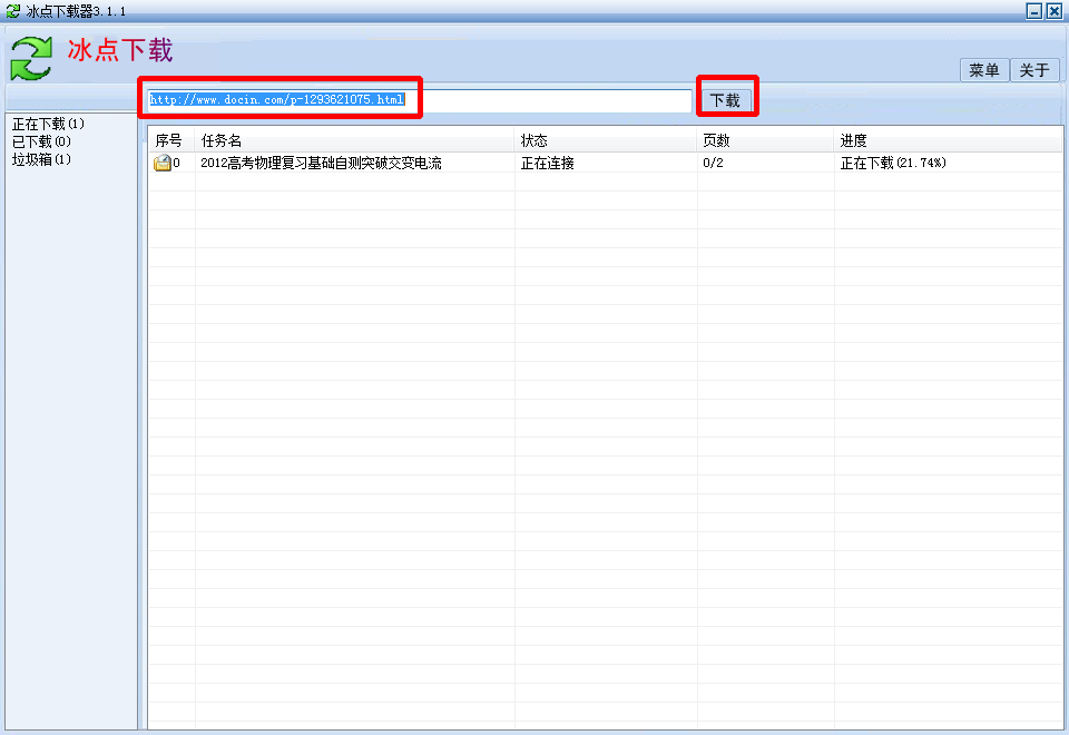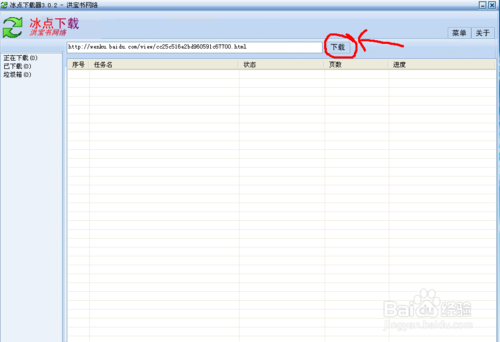 3、打开冰点文库下载器,将下载地址辅助到方框里,点击下载