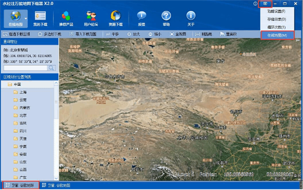 启动水经注万能地图下载器,首先选择谷歌地球在线地图。