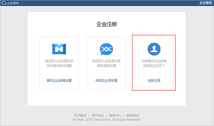 一、 通过电脑登录企业微信官网选择“企业注册”