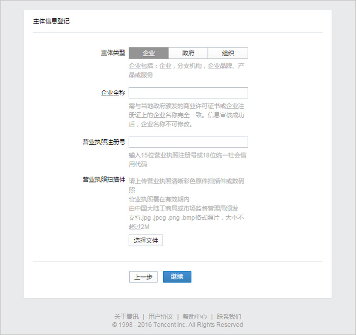 注:若主体信息审核不通过,需重新提交主体信息,重新审核。