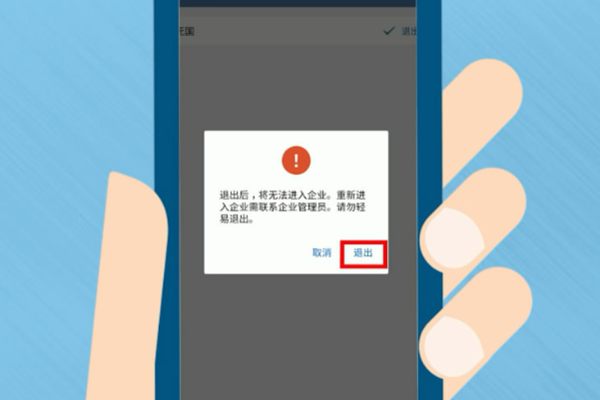 3、当进入第一个企业页面时,将手指一直按住该企业名称,直到弹出退出企业按钮,点击“退出企业”;