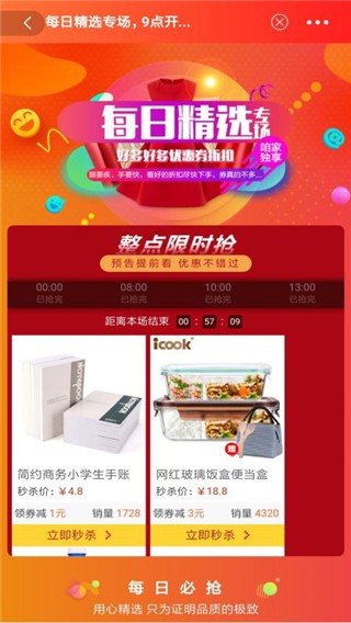 爆款商品秒不停,每日整点限时疯抢。