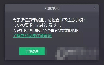 1.录课必须有一个可用的声音输出设备,否则会提示无法录制。具体设置在设备自检页面查看;