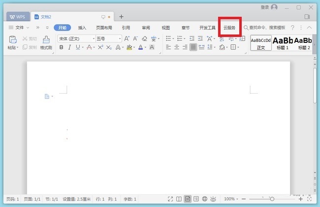 1、首先我们打开一个文档,然后点击上方功能区中的云服务,如下图所示,