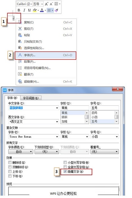 2、点击右键-字体-勾选“隐藏文字”。