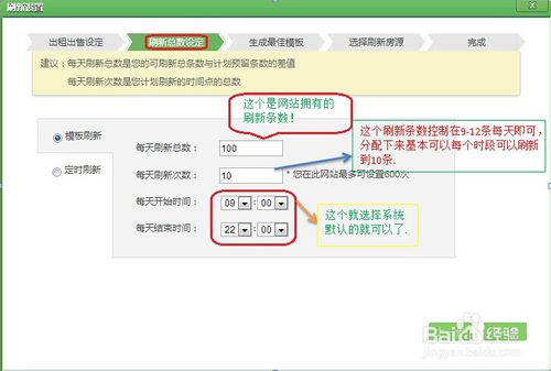 选择模版刷新,设置好每天刷新总数(这个是有网站决定的)和每天刷新次数(这个由自己自由设置),每天开始已经结束时间(最好选择系统默认,也可以自由设置),点击下一步.