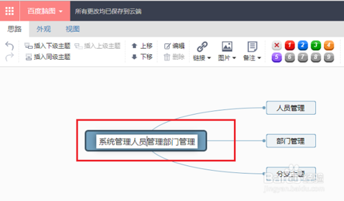 第三步:将绘制好的脑图保存下来。因新版的百度脑图拥有自动保存的功能,所以,用户将绘制好的脑图另存到自己想放的位置即可。