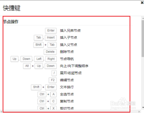 第六步可以看到一些使用的快捷键,如编辑插入节点,换行等,如下图所示: