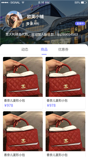2、用户可以在线观看代购直播,支持发布弹幕与代购互动。