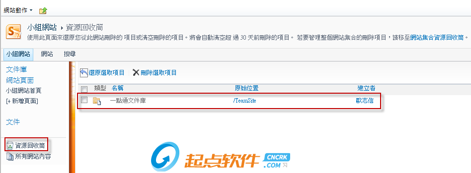 12、删除后会到【资源回收筒】中,如果误删的话可以选择文件库后按【还塬选取项目】即可还塬,请注意资源回收筒会自动清空超过 30 天前删除的项目。