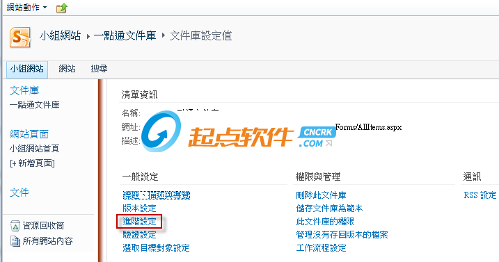 8、假如想要设定该文件库的文件範本的话,请在【文件库设定值】页面选择一般设定分类下的【进阶设定】。