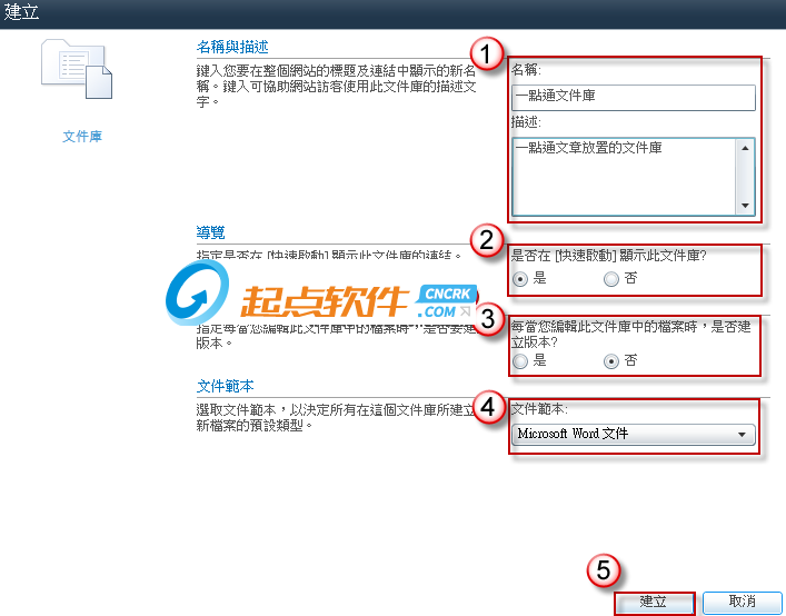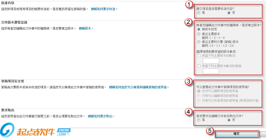 (3) 文件版本歷程记录:设定当您编辑文件库中的档案时,是否建立版本。