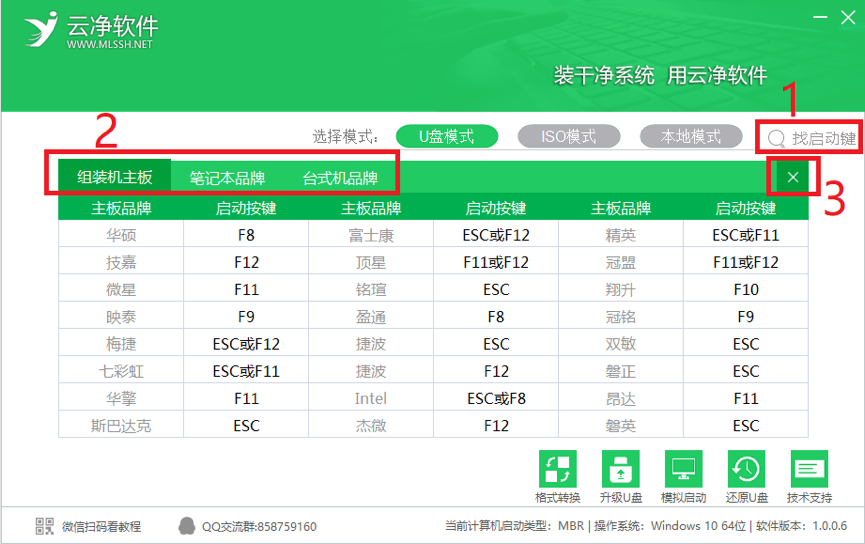 将制作好的U盘插入USB接口,重启电脑等待出现第一个开机画面时按下启动快捷键,以小编的笔记本为例,开启启动键是F7,点击查询启动键。也可以在云净U盘工具主界面查询,如下图: