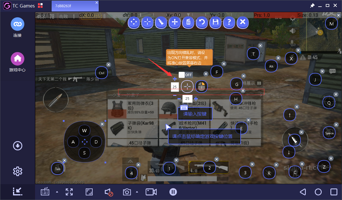 很多新手玩家用tcgames的时候对按键功能不明白可以参照以上内容,特别是不会设置导致不能移动视角、按键失效等问题。其他的模拟器一样,在使用之前都有搞清楚其按键设置,这样才能体会到键鼠玩吃鸡的无限乐趣,跟手搓完全是两个游戏。祝大家天天吃鸡,早日上皇冠!
