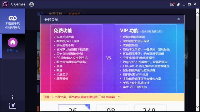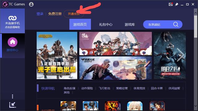 4、tcgames的“快速投屏”只有会员可以使用,所以需要“开通会员”,如图: