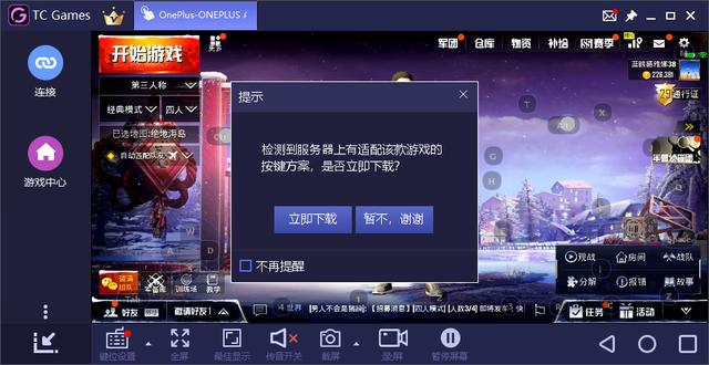备注:如果需要使用电脑控制手机加投屏功能需要使用tcgames的USB或wifi连接方式,并根据提示下载默认操作按键即可像安卓模拟器一样键鼠玩手游啦。